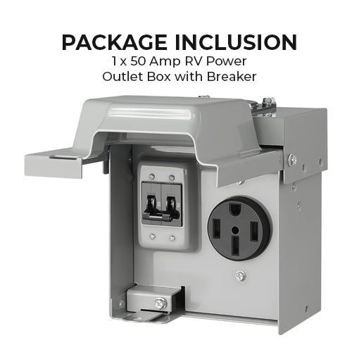 Package Inclusion: 1 x 50 Amp RV Power Outlet Box with Breaker
