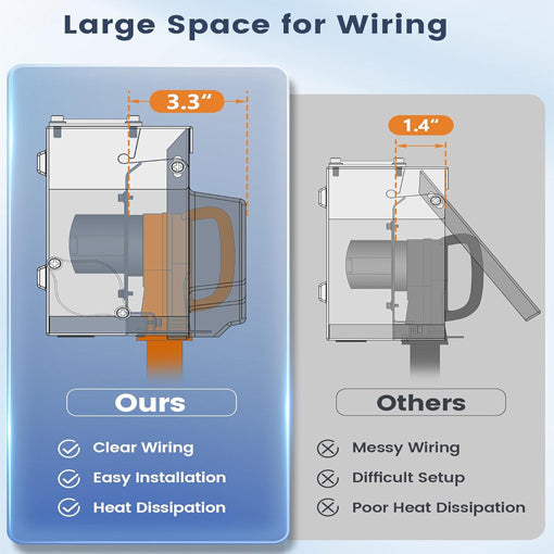 ✅ Easy Installation & Spacious Design: This box comes with pre-drilled holes, removable knockouts, and a large interior to easily accommodate heavy-duty cords, providing convenient setup and reliable connections.